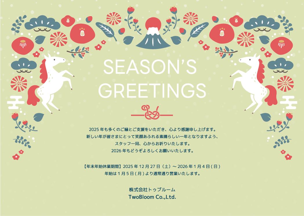 TOP お知らせ 冬季休業のお知らせ ブログ 2025.12.19 冬季休業のお知らせ 年末年始は下記の通りお休みをいただきます。 【冬季休業期間】2025年12月27日(土)~2026年1月4日(日) 休業期間中にいただいたお問い合わせにつきましては、 1月5日(月)以降、順次対応させていただきます。 ご不便をおかけいたしますが、何卒ご理解賜りますようお願い申し上げます。 一覧へ戻る