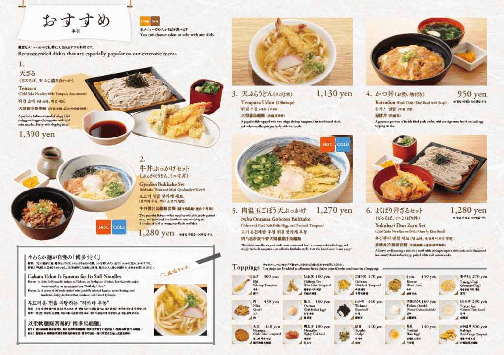 福岡・博多駅にある「大福うどん」様向けに、インバウンド対応メニューを制作しました。