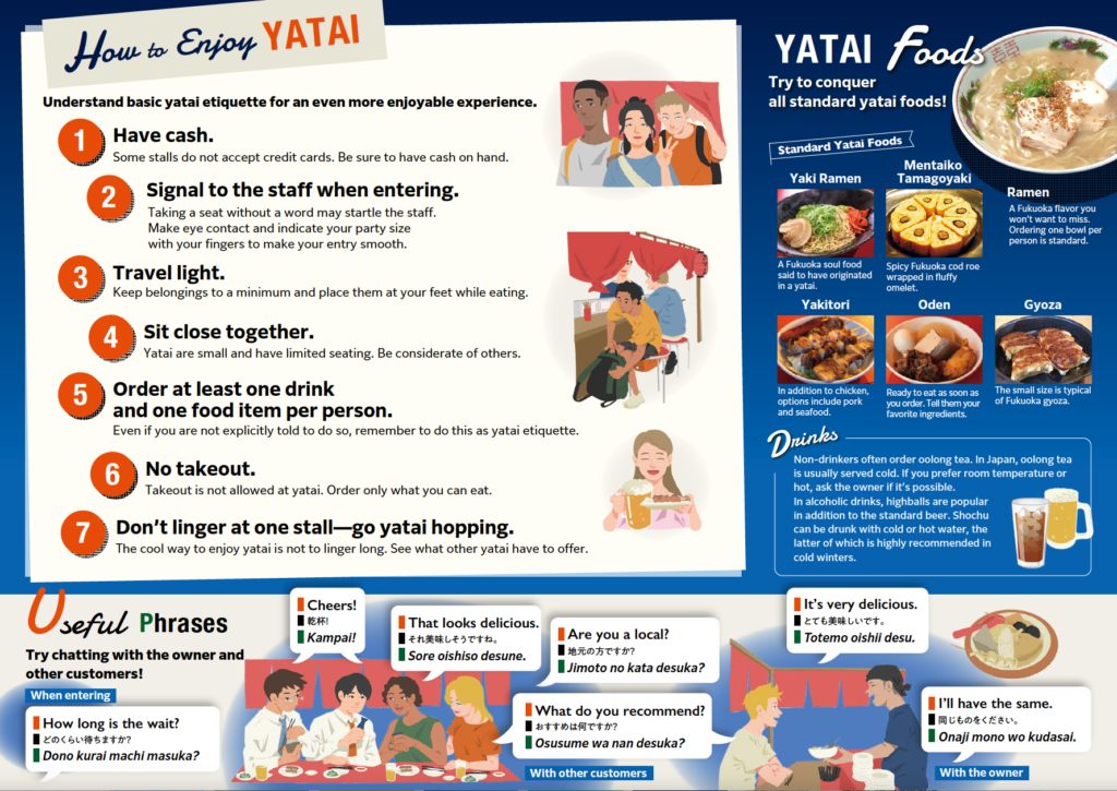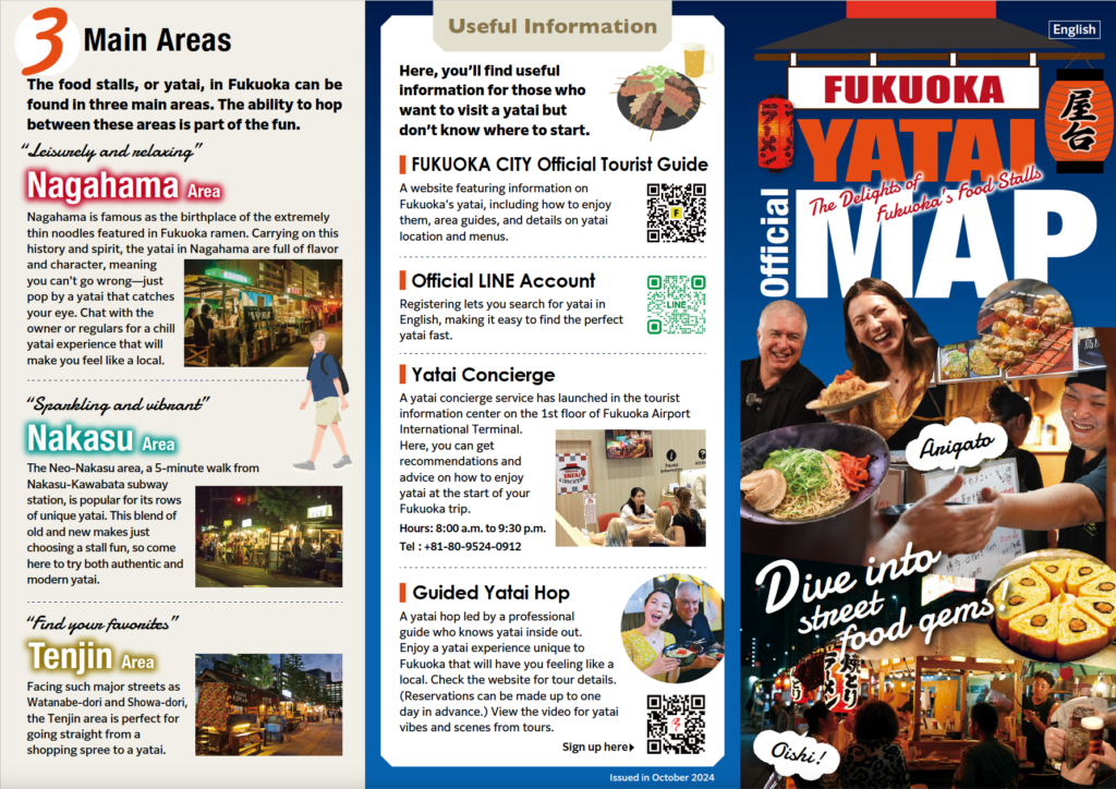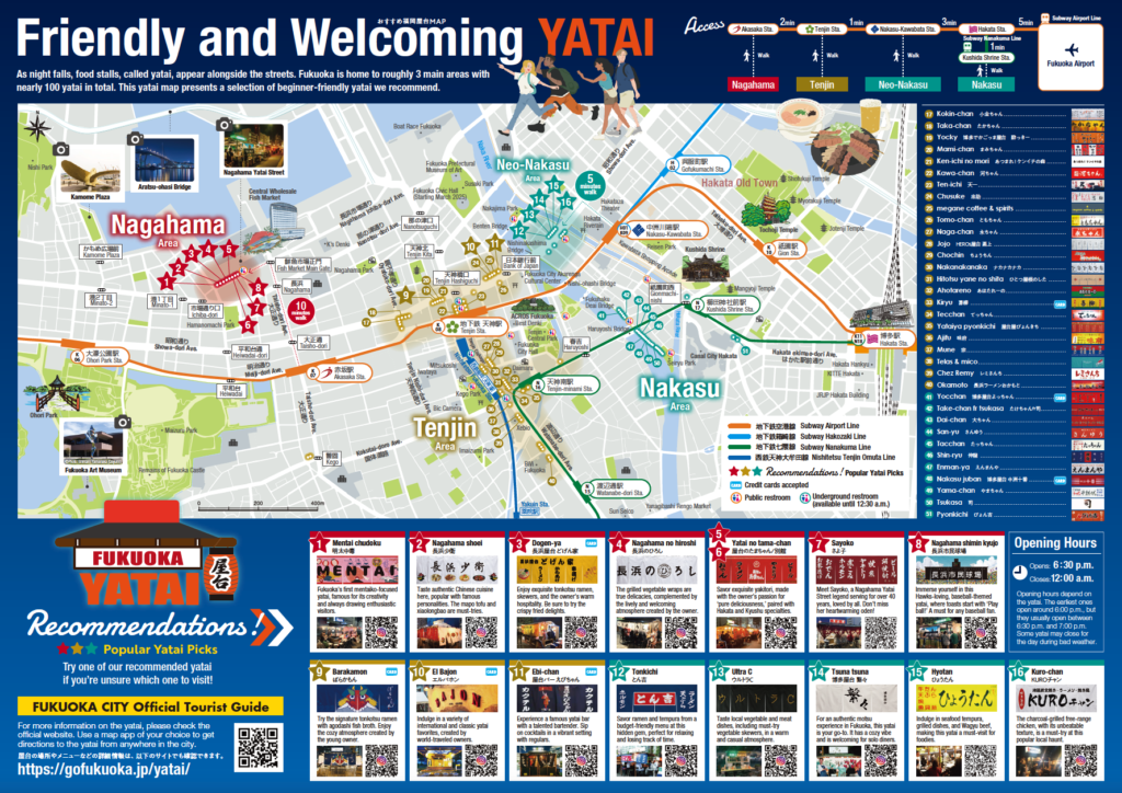 福岡を訪れる外国人観光客が安心して屋台を楽しめるよう作られた『Fukuoka YATAI Official MAP』の、