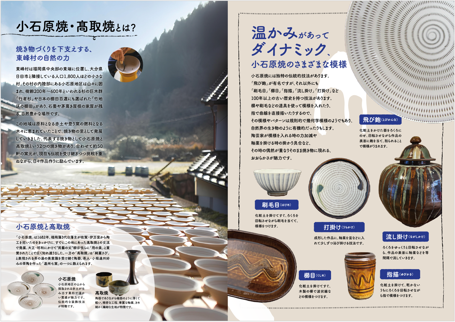 - 多言語リーフレット制作実績|「おいでよ 小石原へ。窯元を巡ってお気に入りの焼き物を探そう」